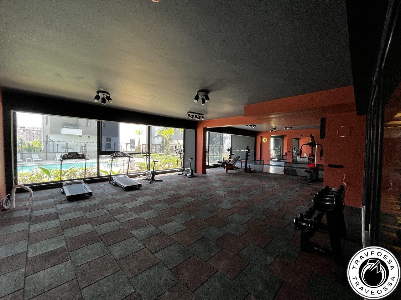- Amenities: 23 m pool; waterpark with two slides; children’s pool & playground; sauna & hammam; gym; yoga/pilates zone; sports court; 24/7 generator; parking
